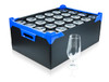 Our pint glass storage box is made from durable yet lightweight corrugated plastic, offering a sturdy solution for safely storing and transporting your glassware. These pint glass storage boxes are easy to assemble and stackable, helping you maximise storage space efficiently. With blue comfort-grip handles and protective black inserts, each pint glass storage box ensures your glasses are secure during transporting and storage. A practical and affordable solution for your glassware needs.